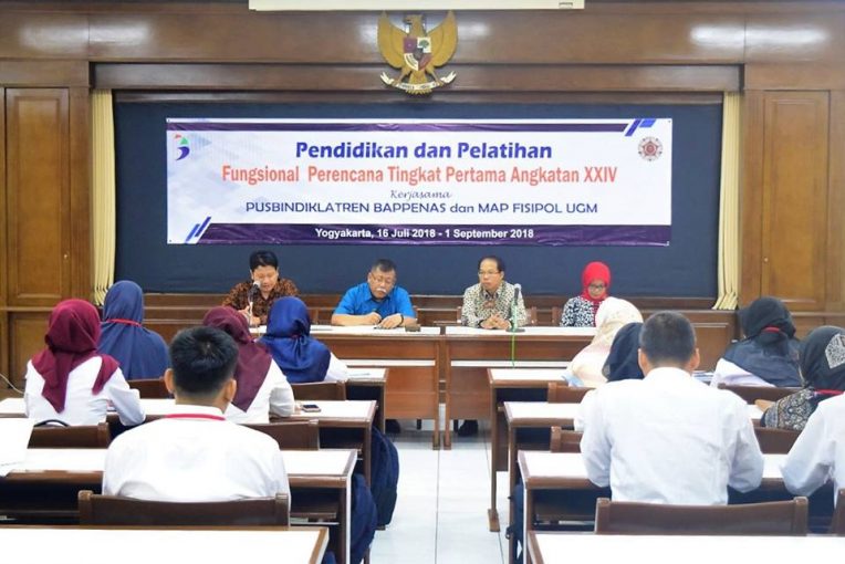 Diklat dibuka oleh Dr. Guspika, MBA selaku Kepala Pusbindiklatren Bappenas dan dihadiri oleh Prof. Dr. Wahyudi Kumorotomo selaku Ketua Prodi S3 MAP Fisipol UGM, Dr. Ambar Widaningrum, MA selaku Ketua Prodi S2 MAP Fisipol UGM dan Dr. Ely Susanto, MBA selaku Ketua Pengelola Diklat MAP Fisipol UGM. Diklat diikuti oleh 20 orang peserta diantaranya 2 orang dari Kabupaten Jombang, 1 orang dari Kabupaten Pekalongan, 2 orang dari Provinsi Kalimantan Tengah, 1 orang dari Provinsi Sumatera Barat, 1 orang dari Kabupaten Klaten, 1 orang dari Kabupaten Brebes, 1 orang dari Kabupaten Blora, 1 orang dari Kota Payakumbuh, 1 orang dari Kota Blitar, 1 orang dari Kabupaten Ketapang, 1 orang dari Kabuoaten Banyuwangi, 1 orang dari Kabupaten Probolinggo, 1 orang dari Kabupaten Sragen, 1 orang dari Kementerian Kehutanan dan LH, 2 orang dari Kementerian Perdagangan, 1 orang dari MPR RI dan 1 orang dari Kementerian Pertanian. Pemasangan tanda peserta secara simbolik kepada Bapak Riko Asmar dari Bappeda Kota Payakumbuh dan Ibu Ririn Wisma Saputri dari Bappeda Kota Blitar.